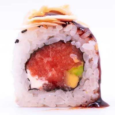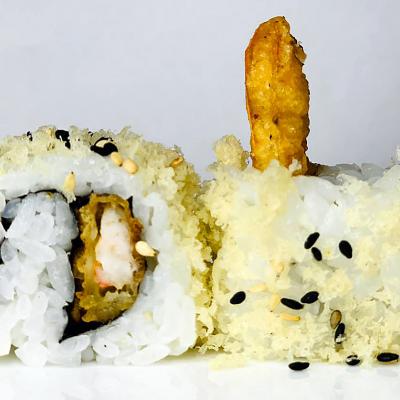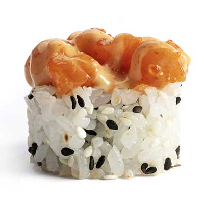 Gamberone fritto, tonno tritato cotto con maionese piccante